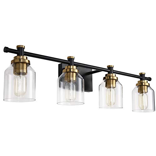 - 3.HIGH QUALITY MATERIAL: Transparent Glass lampshade +Power Coated Matt Black Frame with bronze fixtures
